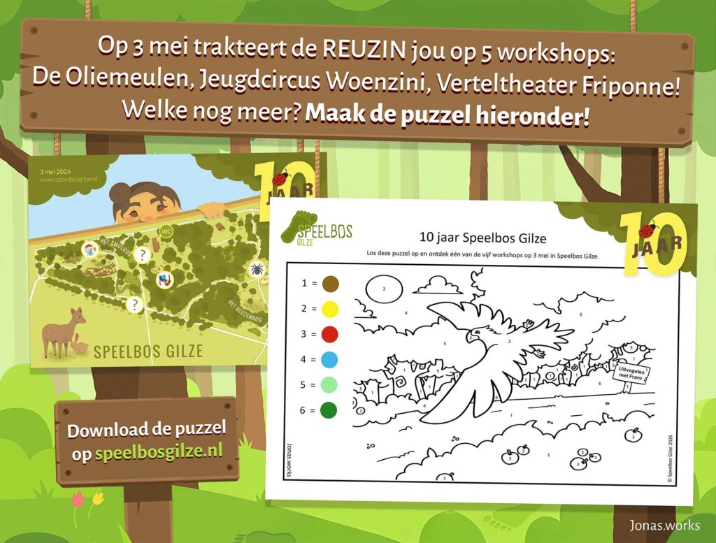 Op 3 mei 2026 vieren we heel graag samen met jou het 10-jarig bestaan van Speelbos Gilze.