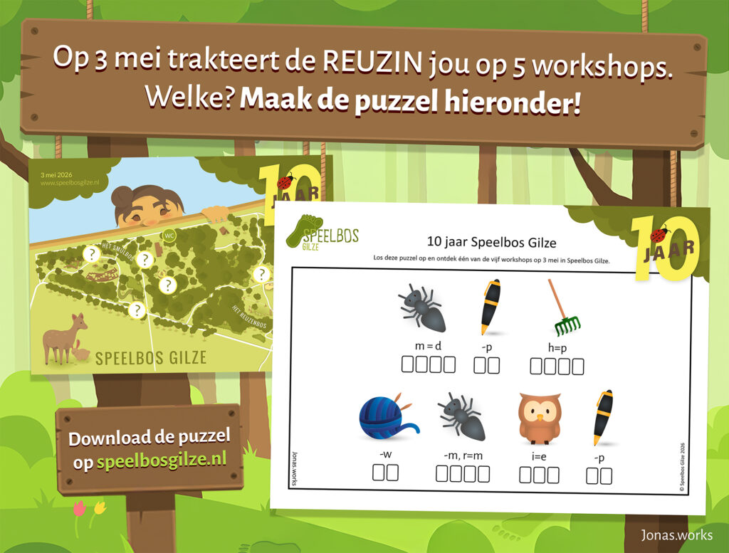 Op 3 mei 2026 vieren we heel graag samen met jou het 10-jarig bestaan van Speelbos Gilze.